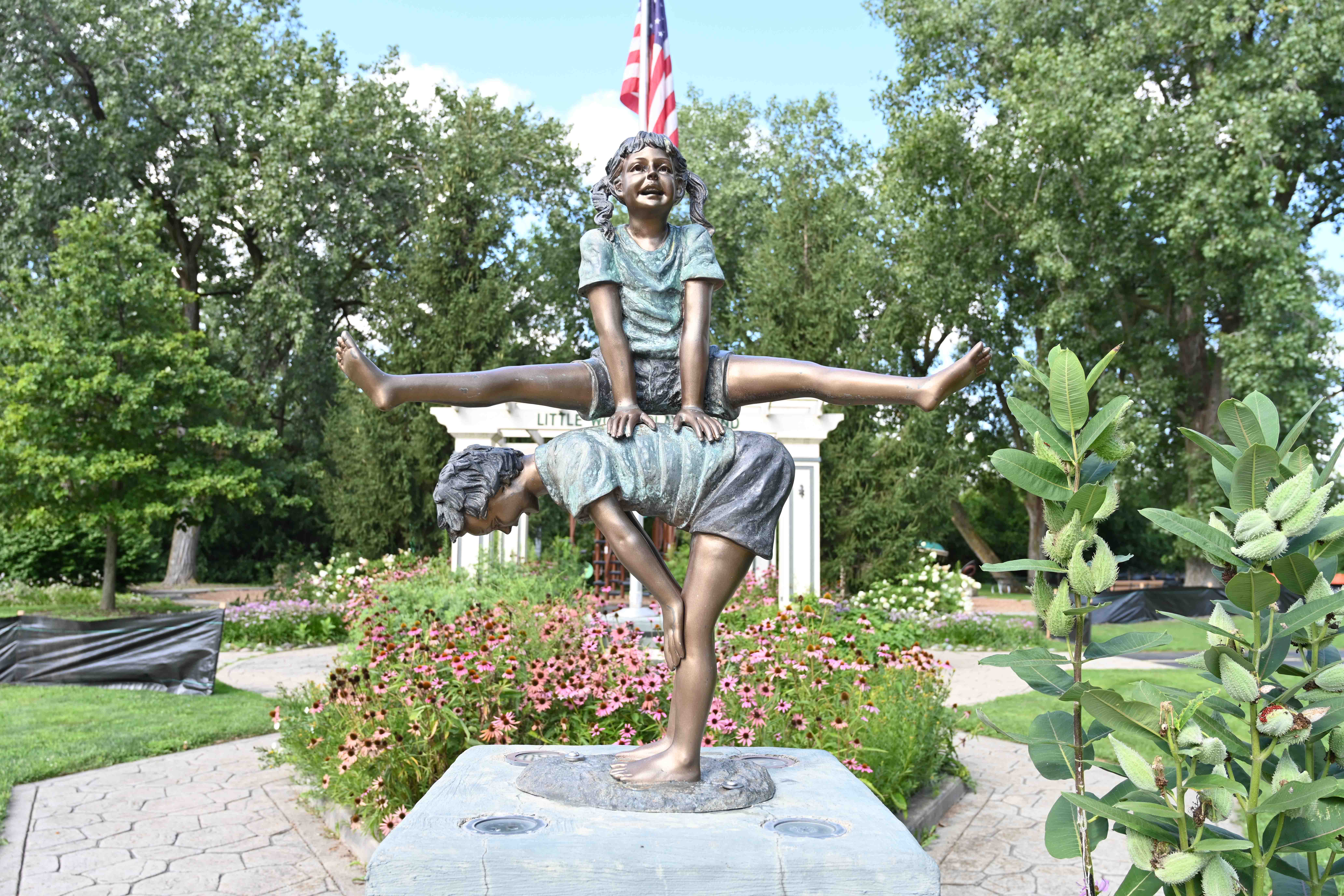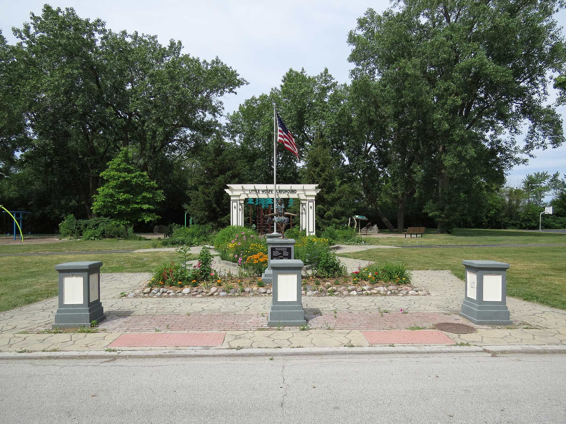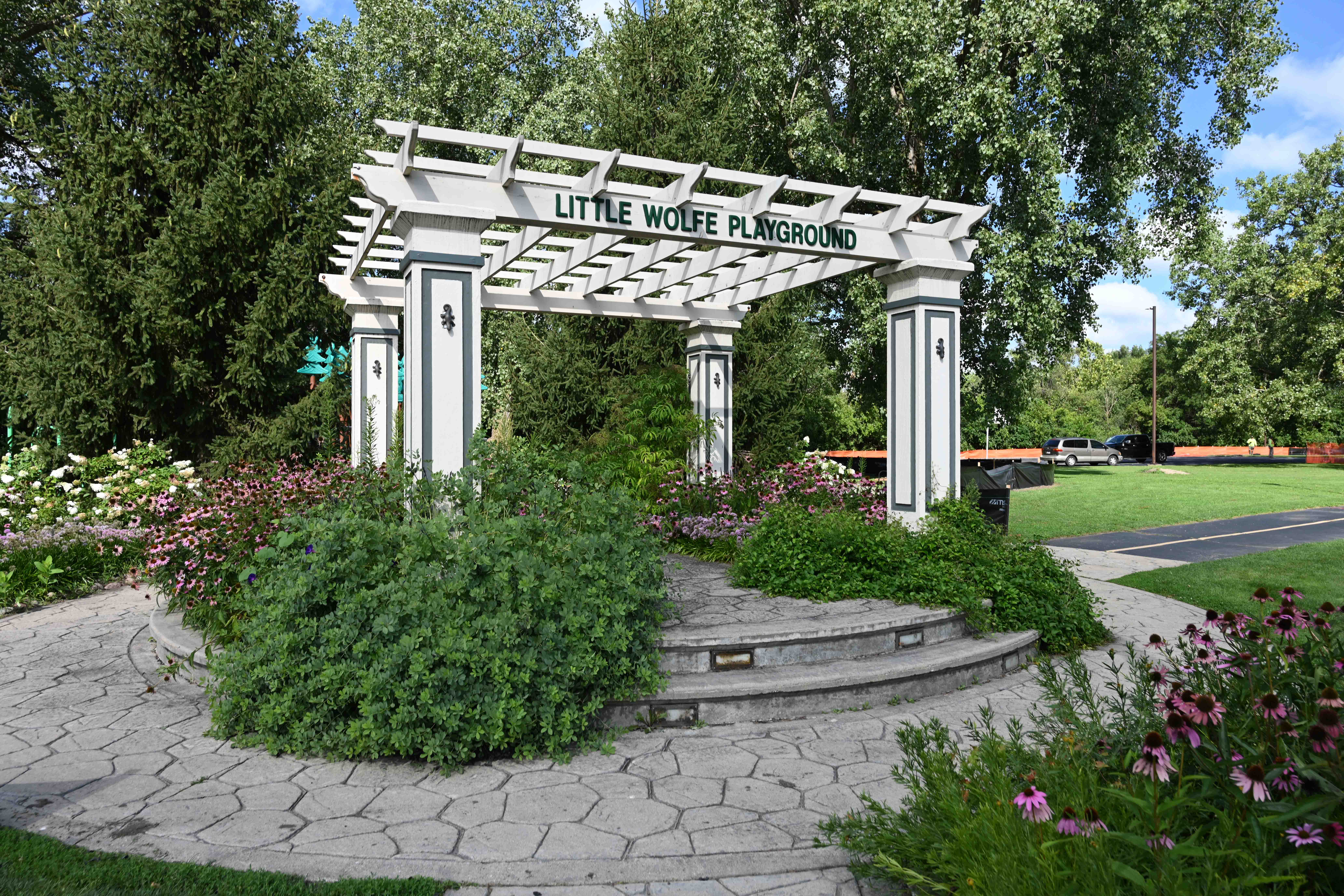 Located just down the street from Wolfe Wildlife Refuge, this park is far from “little.” To match the theme of Wolfe Wildlife, this smaller, kid-friendly playground includes tree, frog, and spider climbers, spinning mushrooms, dragonfly toy, and swings.