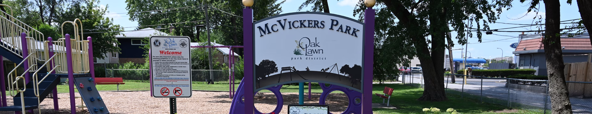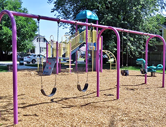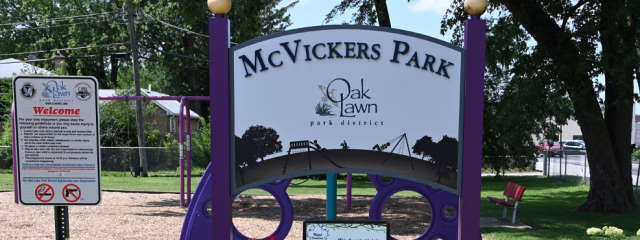 A quaint park tucked in south of 95th Street, McVickers Park (located on McVickers Avenue). The play equipment consists of a main play structure, climber, swings and spring toys. It also includes new seating and entryway.